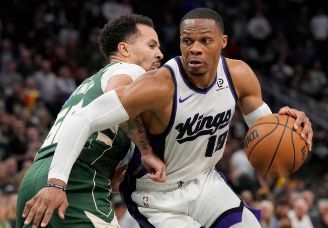 早间场国王和雄鹿的比赛,国王最终135-133雄鹿,威少替补出战33分钟,14中4,拿到12分5篮板10助攻2抢断,正负值+14全场最高。国王具备一套纸面实力很强的首发:施罗德+威少+拉文+德罗赞+萨博尼斯,但球权不好分配。威少打替补后,他带动尤班克斯和拉文,关键时刻,当萨博尼斯五犯不敢做动作时,威少站出来,喂饼小萨,将准备起飞的字母哥拉下来,自己强攻造犯规,包括最后时刻威少贴防特纳,最终雄鹿惜败!威少给予球队的能量带动,不可替代。来到国王,威少场均11.8分4.8篮板4.8助攻,相对于底薪来说,这很棒了。